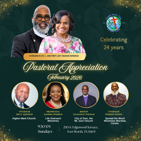We are grateful that you took the time to visit us on the web. At Greater Mt. Tabor Christian Center, we believe in spiritually impacting the minds, hearts and conditions of those in East Fort Worth and beyond. We are a Christ-centered, bible-teaching church that is concerned about the spiritual development of everyone who enters our doors or visits our website. At Greater Mt. Tabor Christian Center, you will find an electric worship experience and something for everyone.